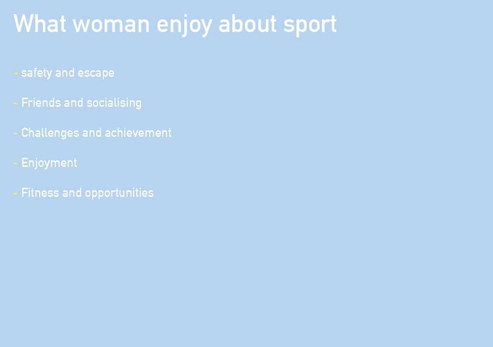 What girls want from sport: More inclined if friends are doing it, group mentality, exercise looked at more of a social activity rather than sport.